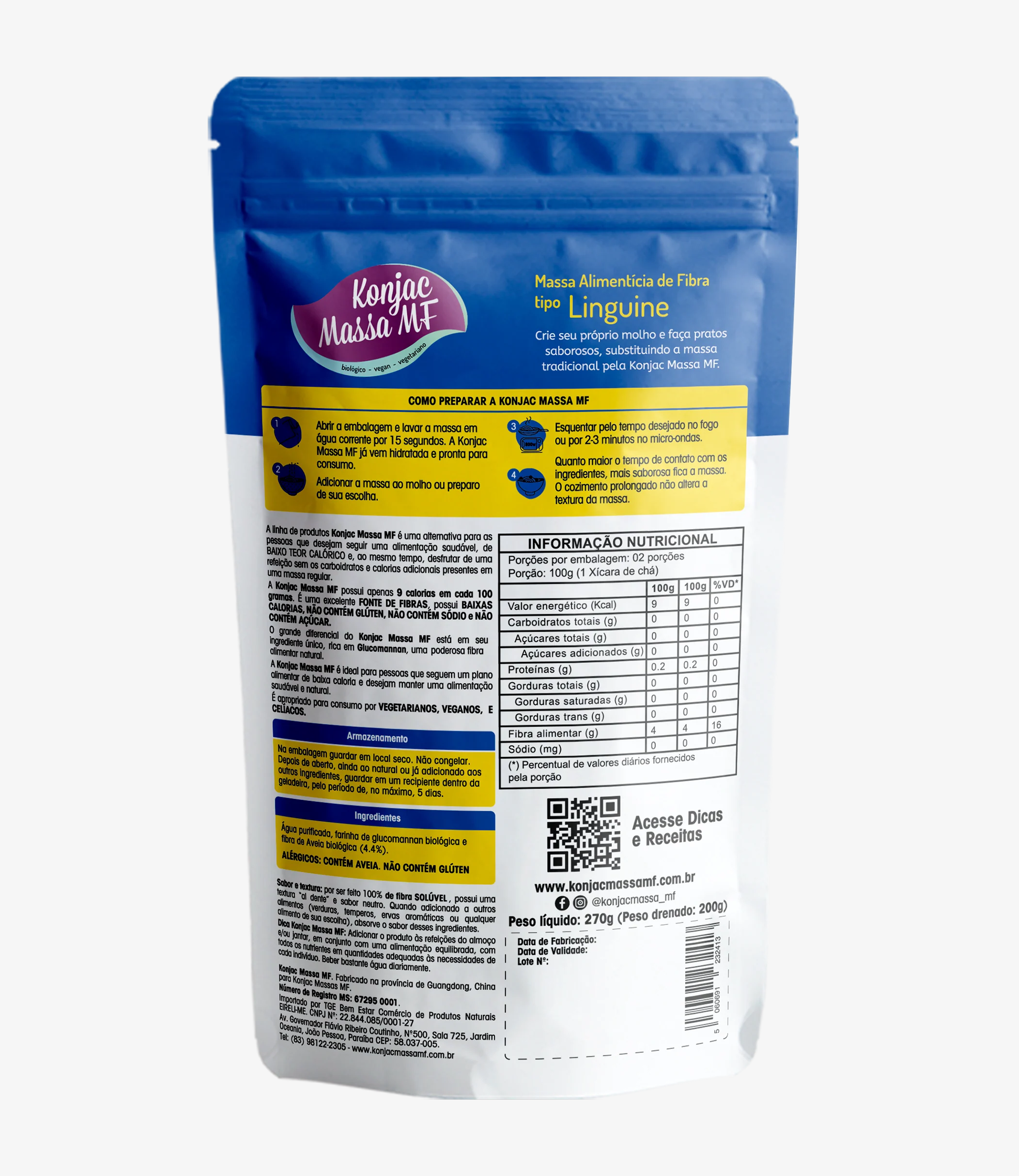 Konjac Massa MF  -TIPO Linguine Zero-Carb, uma opção inovadora para quem busca uma alimentação saudável e saborosa. Elaborada 100% com fibra solúvel de Glucomanan, essa massa é ideal para quem não quer abrir mão do prazer de comer bem, mesmo em dietas restritivas.